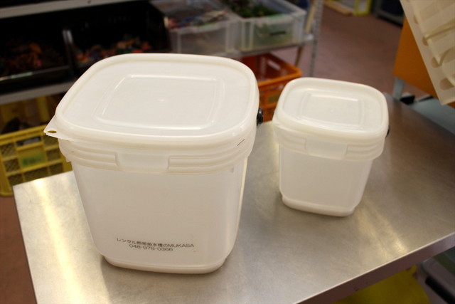 私たちは補充するために魚を持ち出すことはもちろん、お客様の水槽から引き上げることもあります。そんな時はビニール袋よりこの密閉式バケツが重宝します。転がっても漏れることはありません。ビニール袋は一度使ったら捨ててしますので、このバケツのほうがエコです。