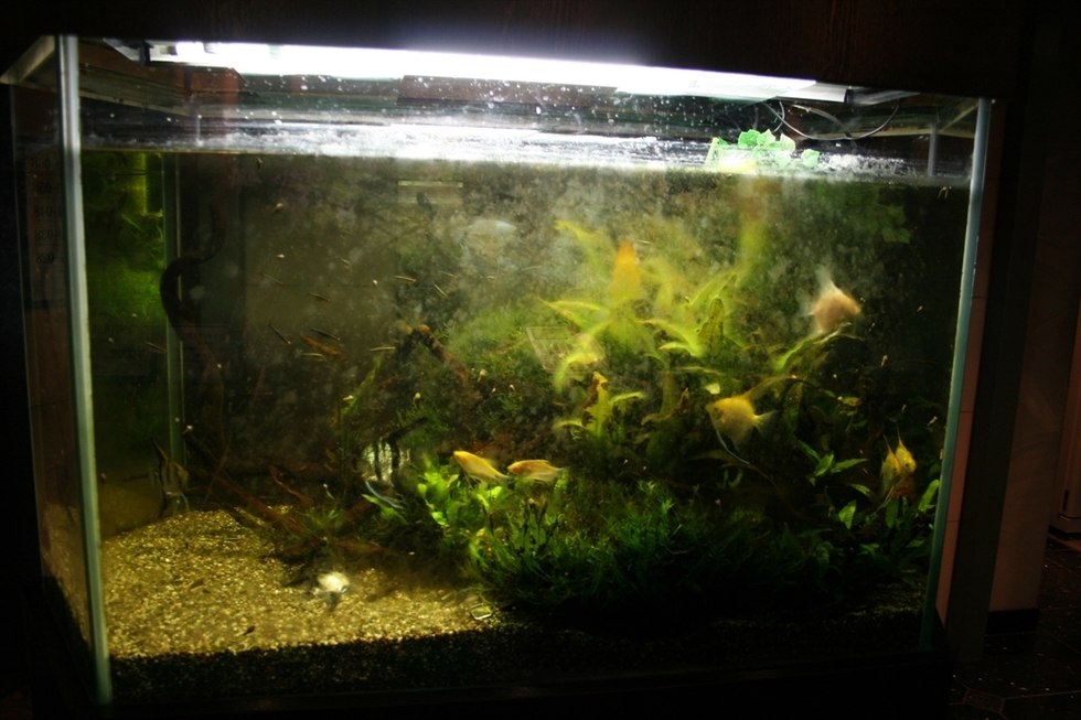 ご自宅で飼われていた熱帯魚水槽。いろいろ見よう見まねで維持してきたようですがなかなか思うようなきれいな水槽にならずご相談。今ある器具を使って美しい水草水槽へ。すぐ病気になってしまい苦手だったカージナルテトラも落ち着いた水槽で元気に泳いで、ご主人さまもご納得いただいてます。